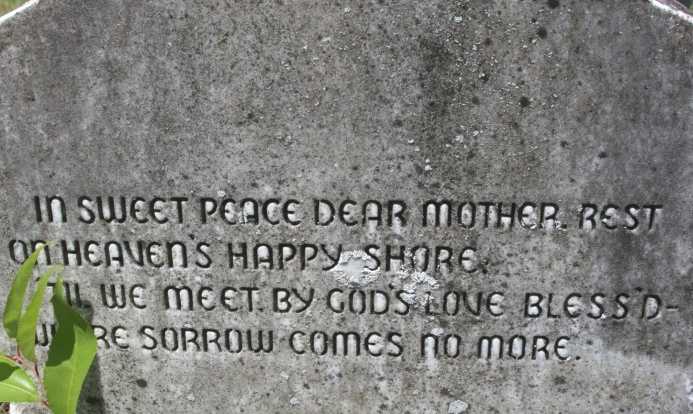 In memory of Dearest Husband thou hast left us And thy loss we deeply mourn. Lola dear has gone to meet thee. Both with [obscured] the Throne. [Lola was John's daughter] |