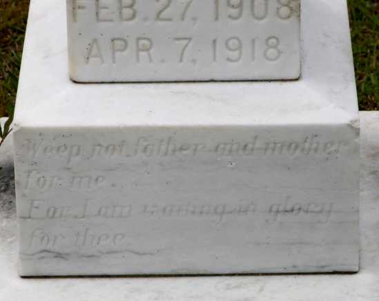 Erected by those who care [Delayed Birth Certificate states birth as April 15, 1899; 1900 census states January 1900] |