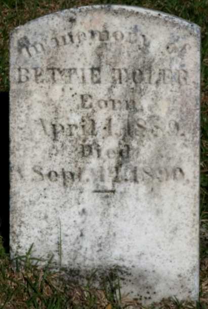 | Toler, Bettie | April 1, 1889 | Sept. 14, 1890 | In memory of |