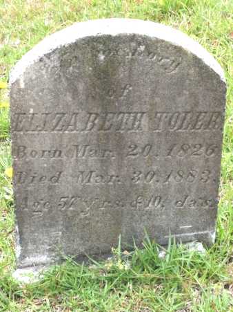 | Toler, Elizabeth | Mar. 20, 1826 | Mar. 30, 1883 | In memory of - Age 57 yrs. & 10 das. |