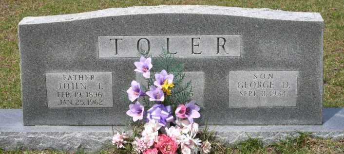 | Toler, John T. | Feb. 19, 1896 | Jan. 25, 1962 | Father [Triple with Rosa G. Toler & George D. Toler] |