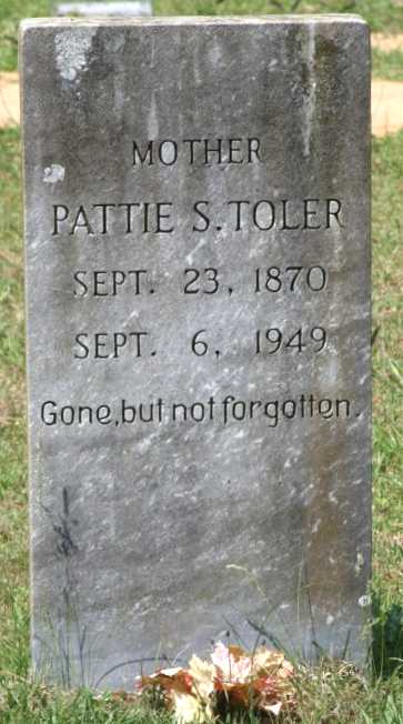 | Toler, Pattie S. | Sept. 23, 1870 | Sept. 6, 1949 | Mother - Gone but not forgotten |