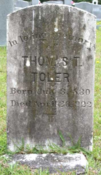 | Toler, Thomas T. | July 3, 1830 | April 26, 1922 | In loving memory of |