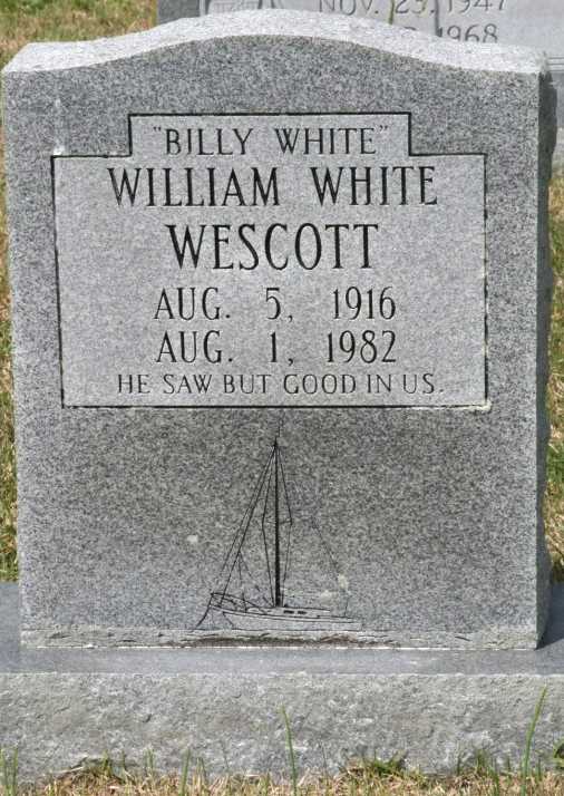 | Wescott, William White "Billy White" | Aug. 5, 1916 | Aug. 1, 1982 | He saw but good in us. |