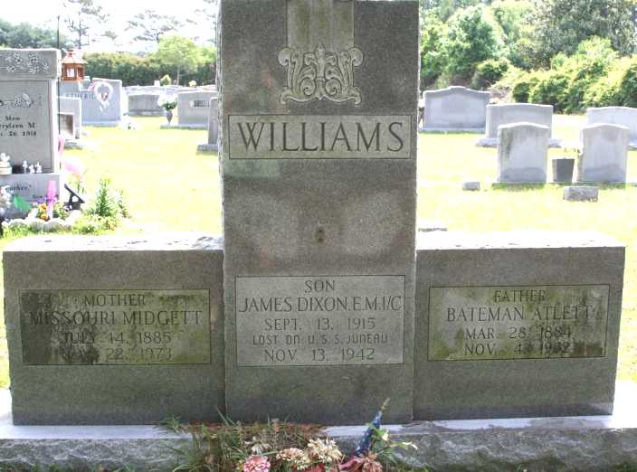 Son - E.C. 1/C - Lost on USS Juneau [Triple with Bateman Atlett Williams & Missouri Midgett Williams] |