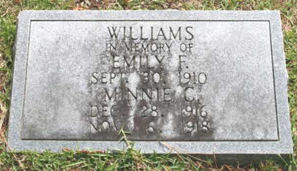 | Williams, Emily F. | Sept. 30, 1910 | Sept. 30, 1910 | In Memory Of [Double with Minnie C. Williams] |