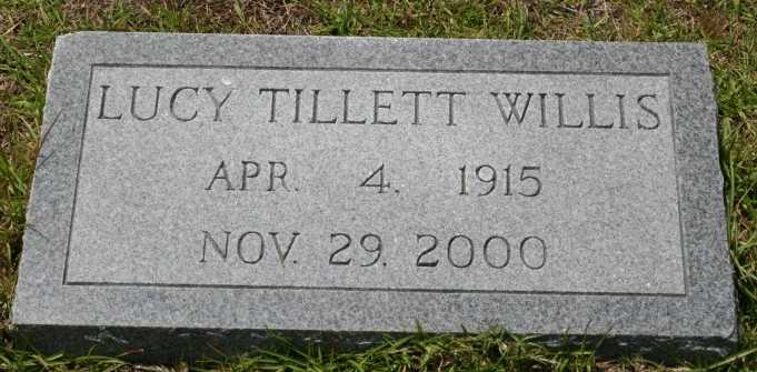 | Willis, Lucy Tillett | Apr. 4, 1915 | Nov. 29, 2000 | [Family Marker] [see obituary] |