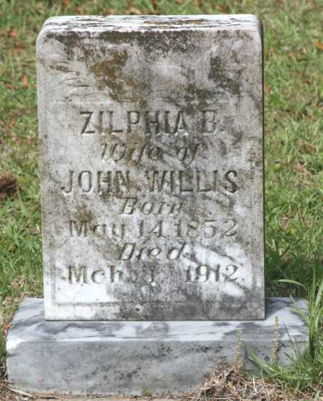 | Willis, Zilphia B. | May 14, 1852 | Mch. 1, 1912 | Wife of John Willis |