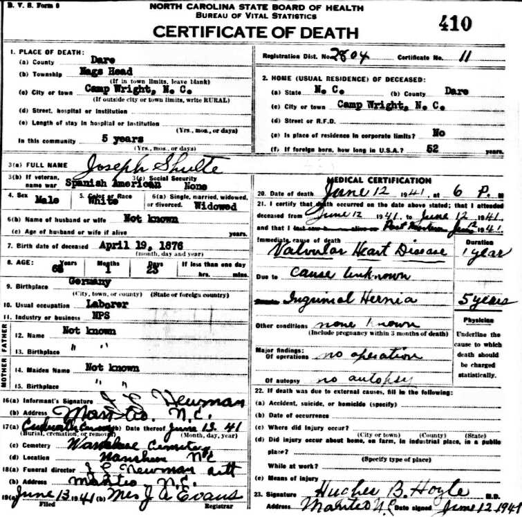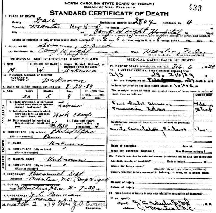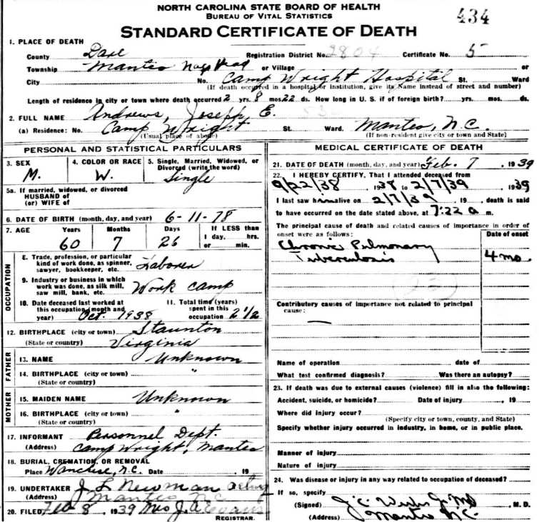 | Andrews, Joseph | June 11, 1879 | Feb. 7, 1939 | [Memorial to homeless men who died in work camps] [Death Certificate] |