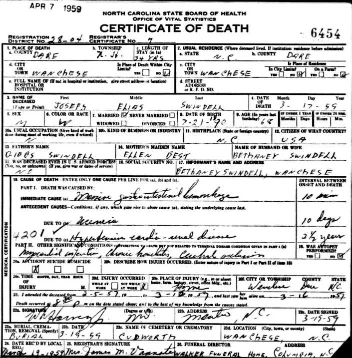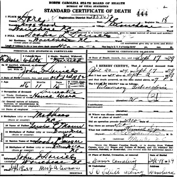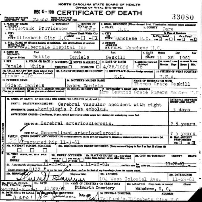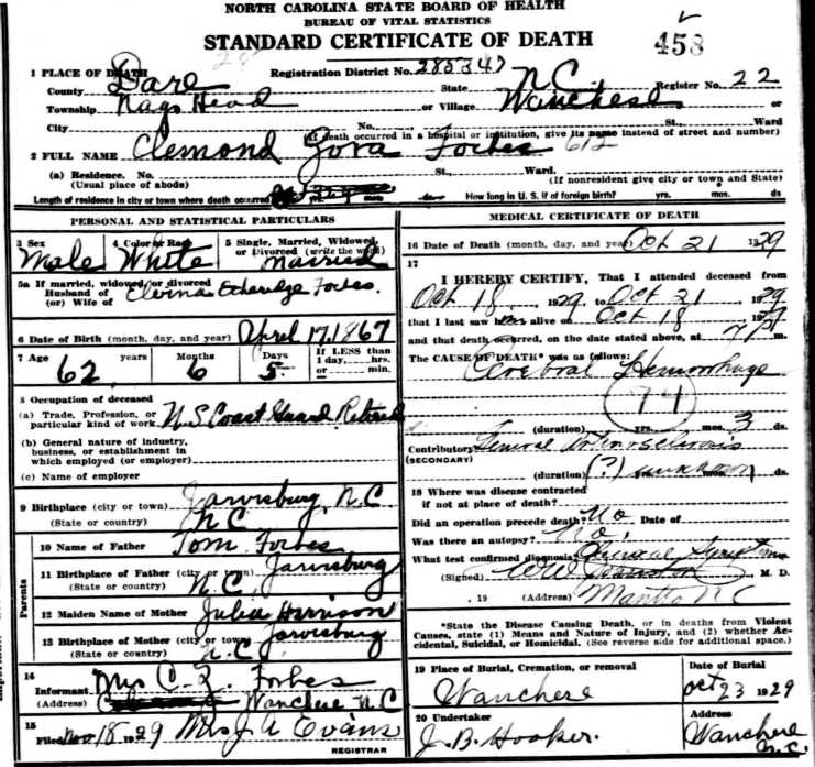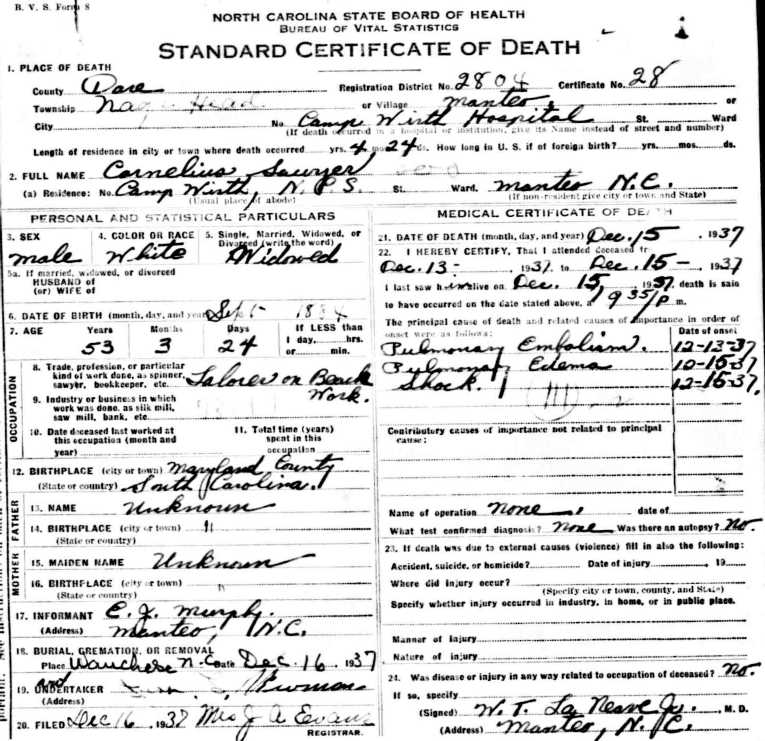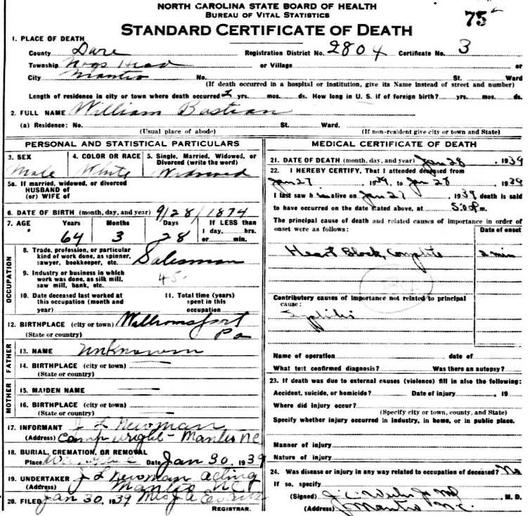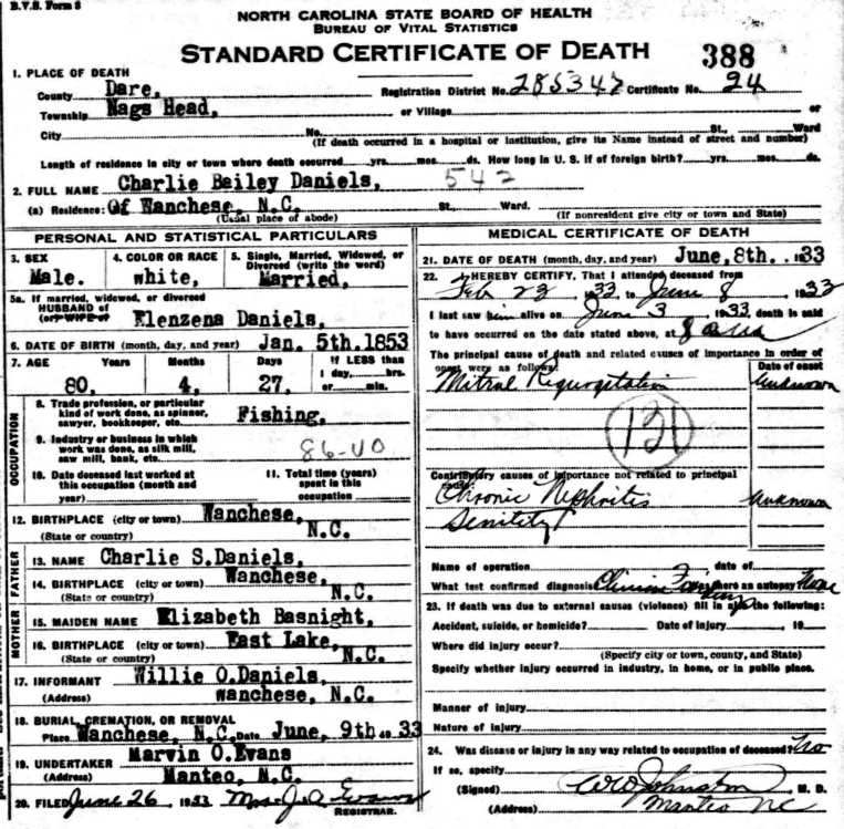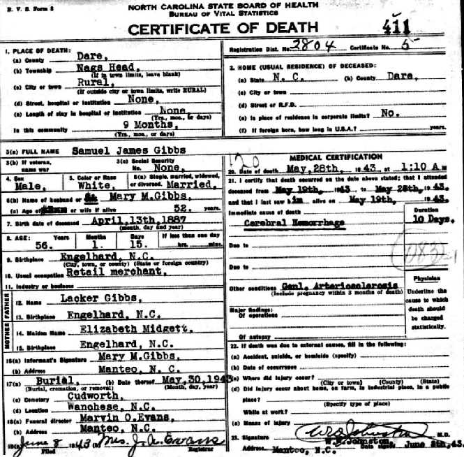 | Basnight, Lennie L. | Oct. 26, 1895 | July 22, 1961 | Father |