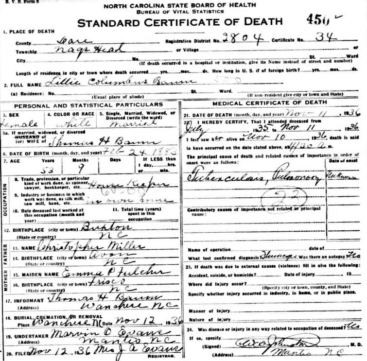 | Baum, Lillie C. | [Feb. 24] 1883 | [Nov. 11] 1936 | [Double with Thomas H. Baum] [Death Certificate] |