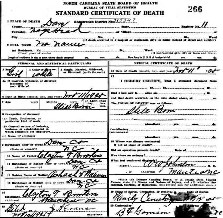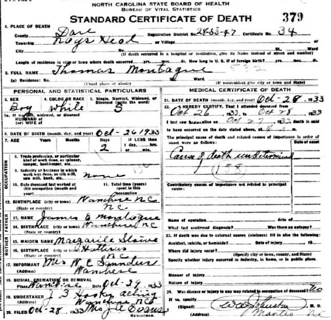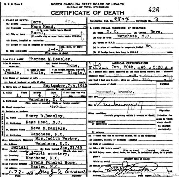 | Beasley, Theresa Marie | [Sept. 7] 1943 | [Jan. 20] 1945 | [Death Certificate] |
