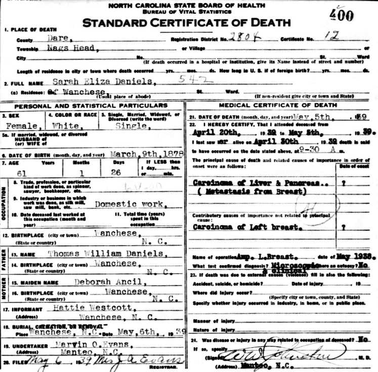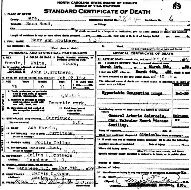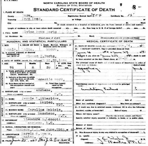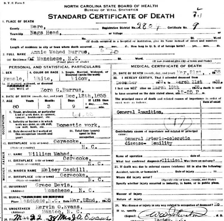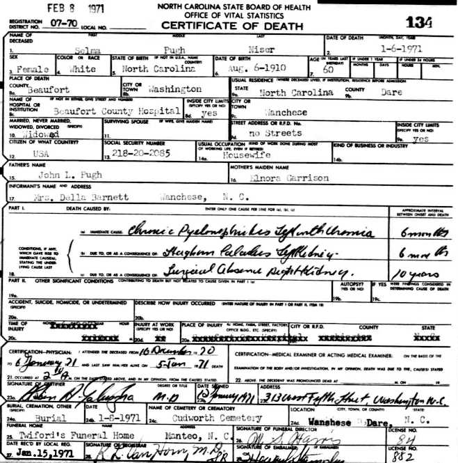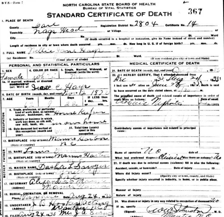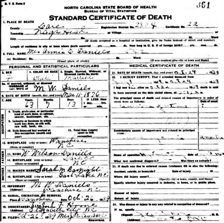 | Basnight, Ida Wynn | Feb. 11, 1896 | June 30, 1974 | Mother |