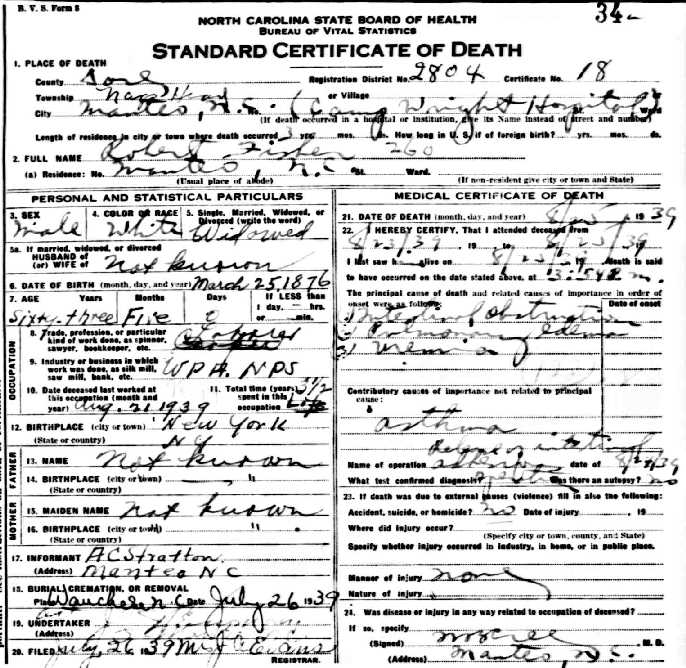 | Wilcox, Thomas R. | May 19, 1898 | May 31, 1954 | North Carolina Pvt. Co. D 19 BN US Guards World War I |
