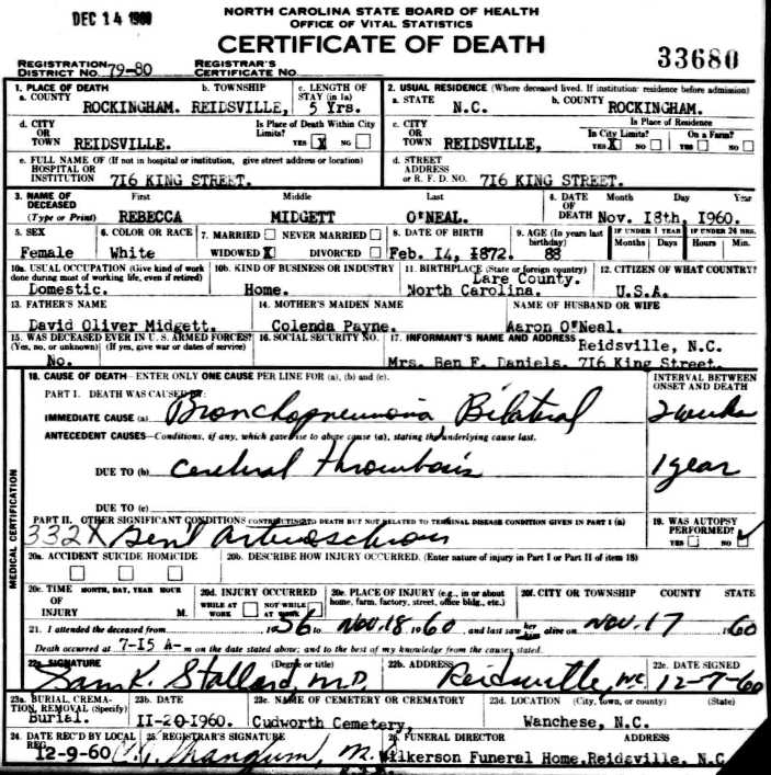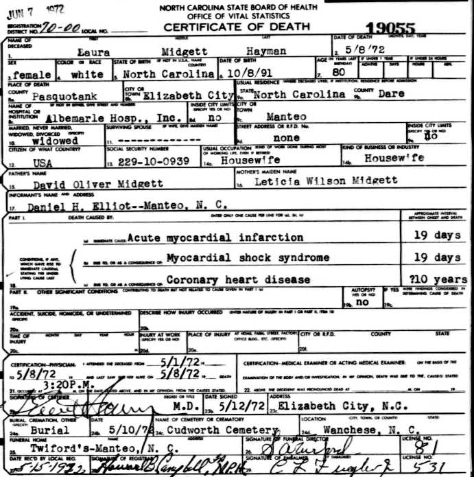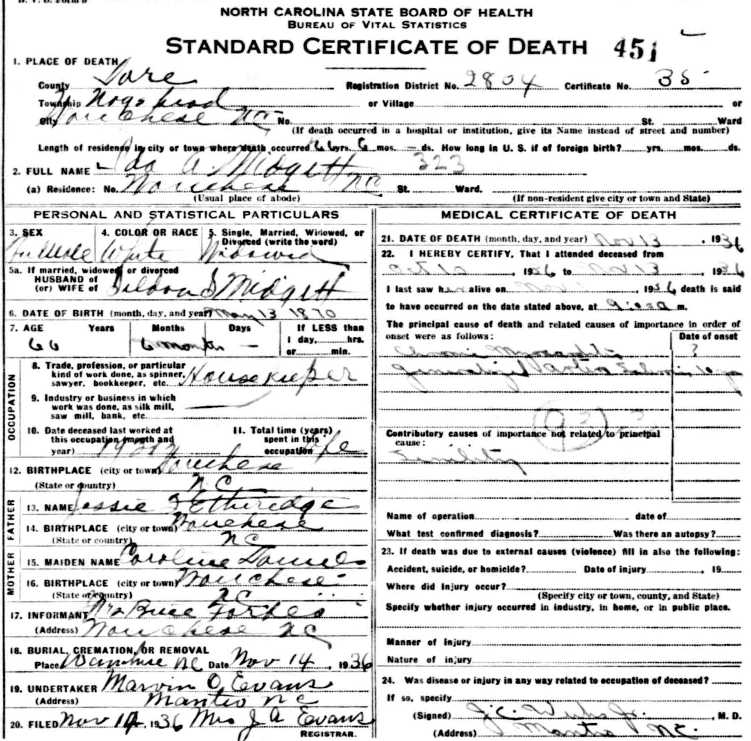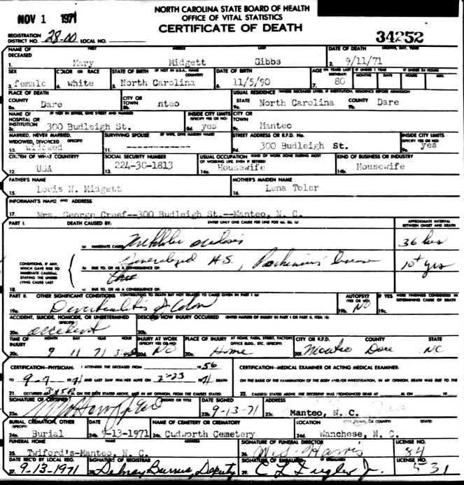 | Williams, Missouri Midgett | July 14, 1885 | Nov. 22, 1973 | Mother [Triple with Bateman Atlett Williams & James Dixon Williams] |