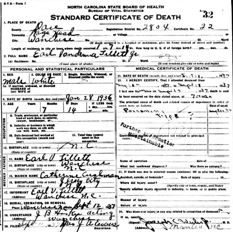 | Tillett, Ronald H. "Ronnie" | Sept. 25, 1934 | Dec. 30, 1936 | Sons of Andrew & Margaret [Double with Gerald R. Tillett] |