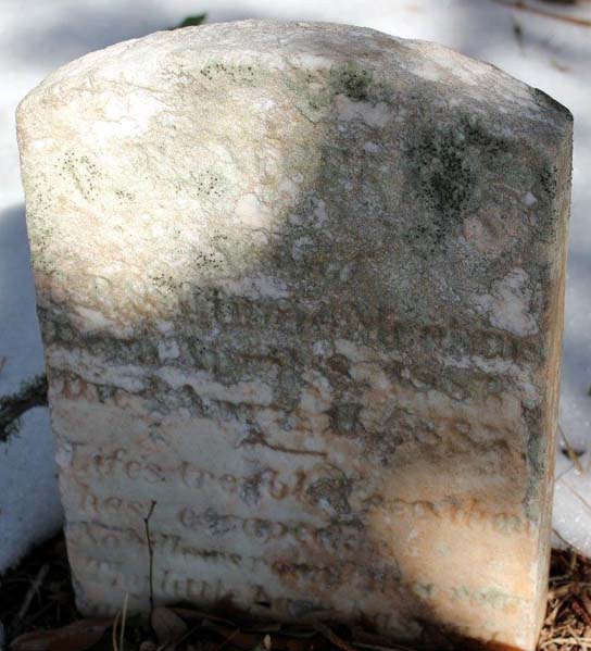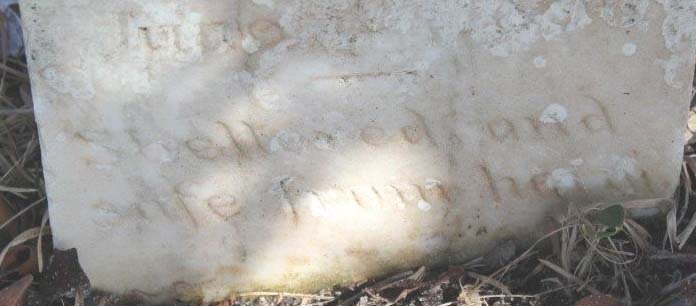 | Meekins, Chloey B. | Oct. 5, 1881 | Daughter of Wm. T. & Fredanna [Epitaph unreadable] | |