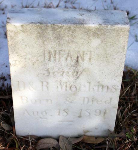 | Meekins, infant son | Aug. 18, 1891 | Aug. 18, 1891 | Son of D. & R. Meekins |