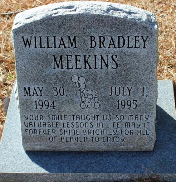 | Meekins, William Bradley | May 30, 1994 | July 1, 1995 | Your smile taught us so many valuable lessons in life. May it forever shine brightly for all of Heaven to enjoy. [see obituary] |