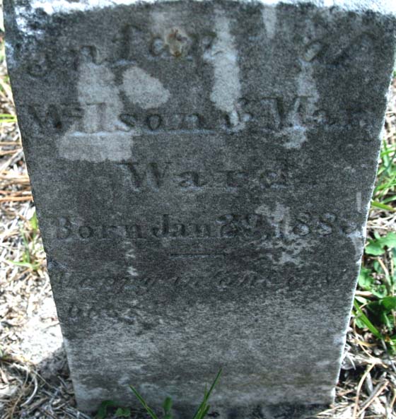| Ward, Willie M. | Mar. 24, 1885 | Age 4 mos. 9 days [This stone was found in a 1992 survey but not in 2014] |