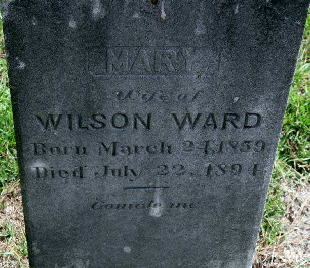 | Ward, Mary | March 24, 1859 | July 22, 1894 | Wife of Wilson Ward - Come to me |