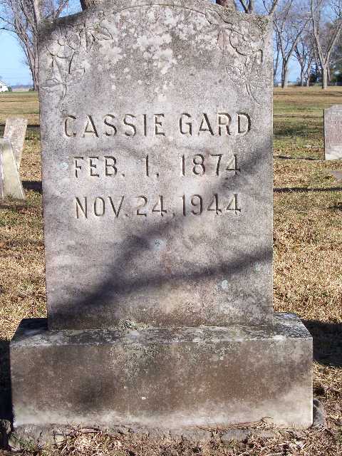 | Gard, Cassie | Feb. 1, 1874 | Nov. 24, 1944 | Photo taken by Vickie Craddock in 2009 [see obituary] |