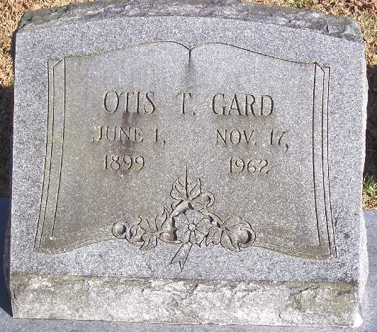 | Gard, Otis T. | June 1, 1899 | Nov. 17, 1962 | Photo taken by Vickie Craddock in 2009 [see obituary] |