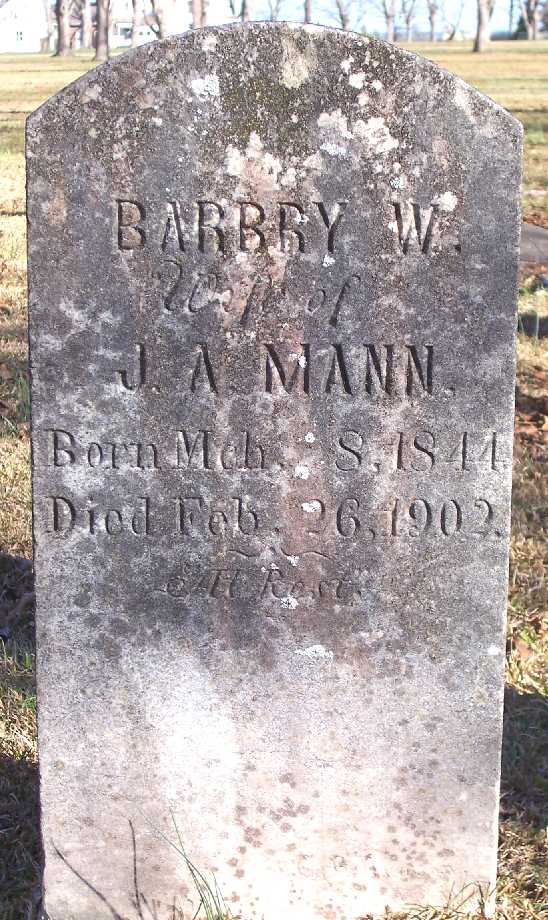 | Mann, Barbry W. | Mch. 8, 1844 | Feb. 26, 1902 |