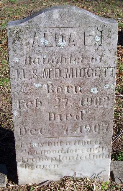 Daughter of J.L. & M.D. Midgett Twas but a flower too good for earth transplanted into heaven. Photo taken by Vickie Craddock in 2009 |