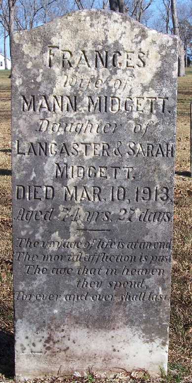 | Midgett, Frances B. [broken stone] | Feb. 5, 1842 | Jan. 19, 1903 |