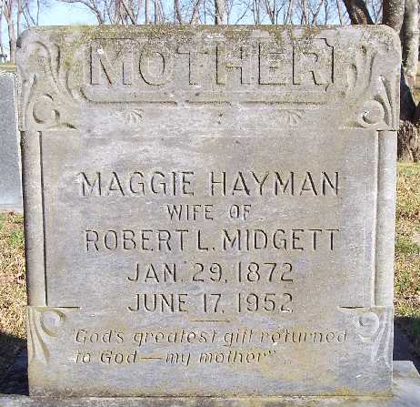 | Midgett, Maggie Hayman | Jan. 29, 1872 | June 17, 1952 |
