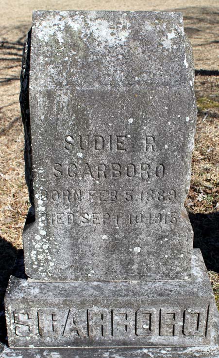| Scarboro, Sudie R. | Feb. 5, 1889 | Sept. 10, 1915 | Photo taken by Candy L. Roth in Feb. 2014 |