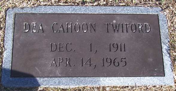 | Twiford, Dea Cahoon | Dec. 1, 1911 | Apr. 14, 1965 | Photo taken by Vickie Craddock in 2009 |