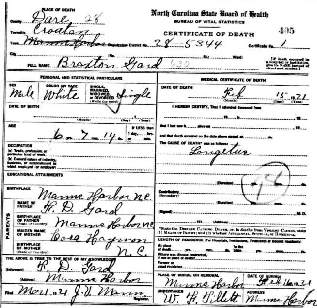 | Midgett, E.B. [Ellis Bradford] | May 25, 1874 | Oct. 27, 1912 |