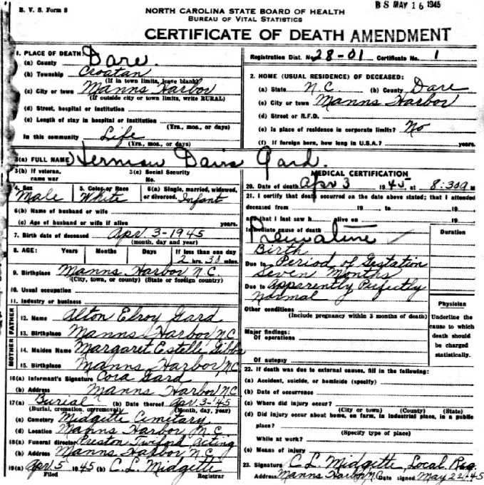 [Death Certificate] Photo taken by Vickie Craddock in 2009 |