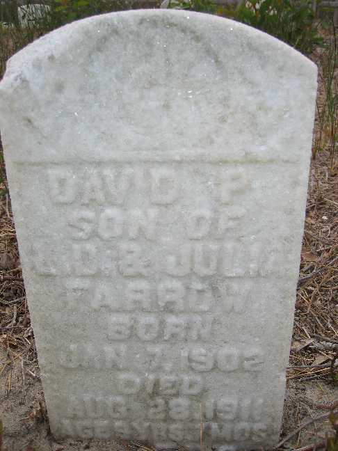| Farrow, David P. | Jan. 7, 1902 | Aug. 28, 1911 | Son of L.D. & Julia Farrow; 9 Yrs. 7 mos. 21 days |