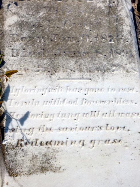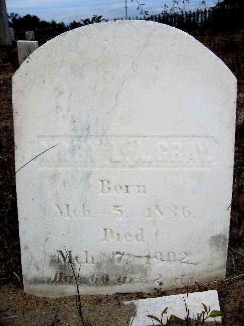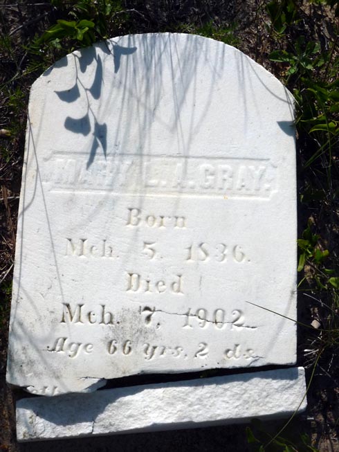 | Gray, Mary L.A. | Mch. 5, 1836 | Mch. 7, 1902 | Age 66 yrs. 2 ds. [2013 photo by Tammy OHagan] |