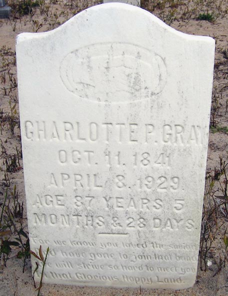 | Gray, Charlotte P. | Oct. 11, 1841 | Apr. 8, 1929 | Age 87 Years 5 Months & 28 Days |