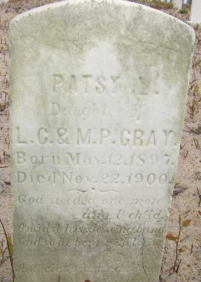 | Gray, Patsy L. | May 12, 1897 | Nov. 22, 1900 | Infant daughter of L.C. & M.P. Gray |