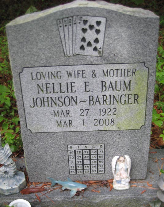 | Baringer, Nellie E. Baum Johnson | Mar. 27, 1922 | Mar. 1, 2008 | Loving Wife & Mother [see obituary] |