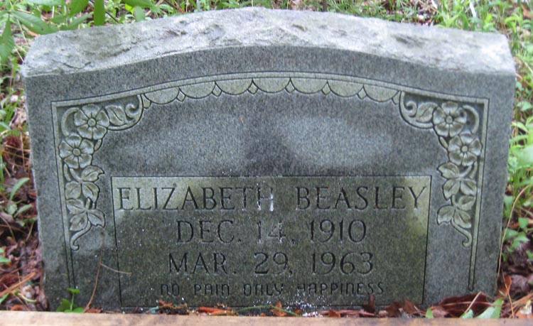 | Beasley, Elizabeth | Dec. 14, 1910 | Mar. 29, 1963 | No pain only happiness [see obituary for Elizabeth Beasley Midgett] |