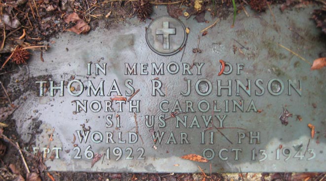 | Johnson, Thomas R. | Sept. 26, 1922 | Oct. 13, 1943 | In Memory Of - North Carolina S1 US Navy World War II PH |