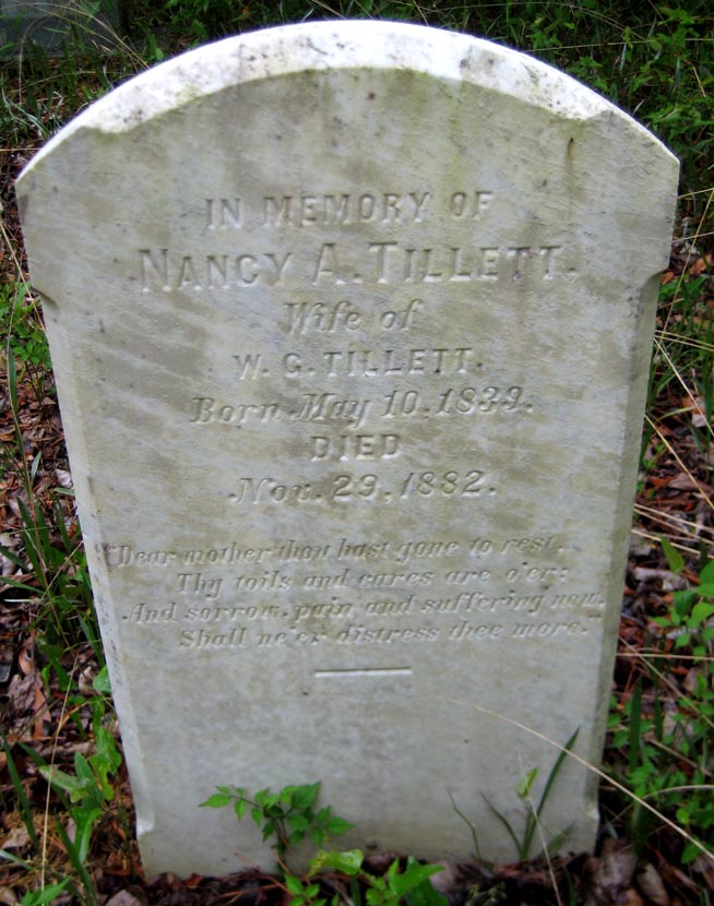 | Tillett, Nancy A. | May 10, 1839 | Nov. 29, 1882 |