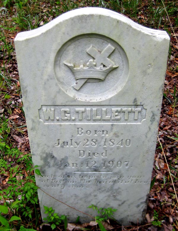| Tillett, W.[Willis] G. | July 28, 1840 | Jan. 12, 1907 | Each of us hope to join you at last on the beautiful heavenly shore. |