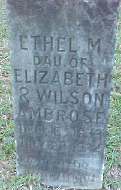 | Ambrose, Ethel M. | Dec. 6, 1933 | July 22, 1934 | Dau. of Elizabeth & Wilson Ambrose |