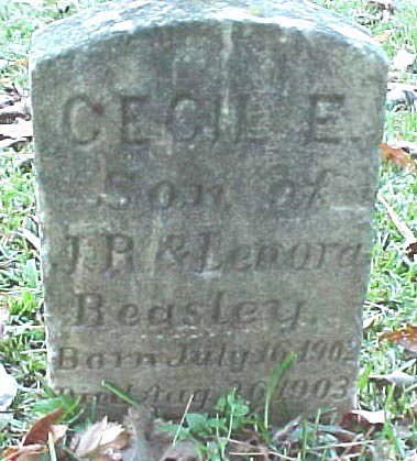 | Beasley, Cecil E. | July 16, 1902 | Aug. 26, 1903 | Son of J.R. & Lenora Beasley |
