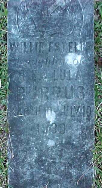 | Burrus, Willie Estelle | March 10, 1939 | July 10, 1939 | Daughter of R.E. & Lula Burrus |
