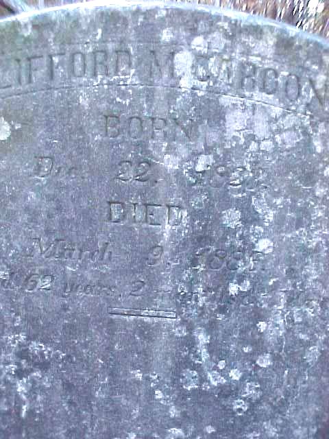 | Caroon, Clifford M. | Dec. 22, 1823 | Mar. 9, 1886 | Aged 62 years, 2 months & 17 days |