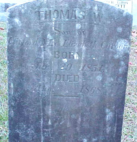 | Caroon, Thomas W. | Jan. 29, 1851 | Aug. __, 1868 | Son of Clifford M. & Elozabeth Caroon |