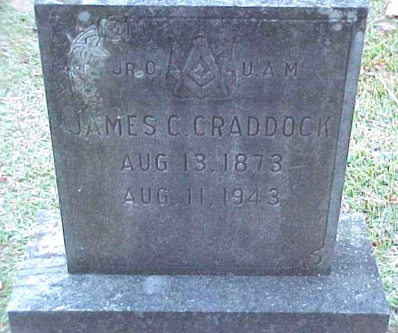| Craddock, James C. | Aug. 13, 1873 | Aug. 11, 1943 | Masonic Emblem; Jr. O.U.A.M. [Jr. Order United American Mechanics] |